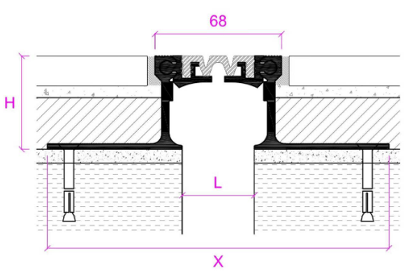 Deformacinis profilis PROJOINT, aliuminis su EPDM guma, W68mm, H18 - 80mm, L3000 mm