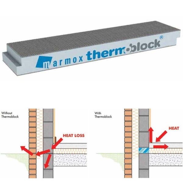 Marmox Thermoblock tai šalčio tiltui tarp pamato ir sienos panaikinti skirta plokštė. Didelio stiprumo, mažai laidi, o sudėtyje įmontuota epoksidinio betono kolonų eilė (žr. nuotrauką). Tai naujausia CARBON NANO TUBES technologija.